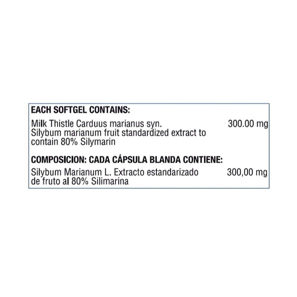 Composición: Sylibum marianun L., extracto estandarizado de fruto al 80% de silimarina (vegetal).