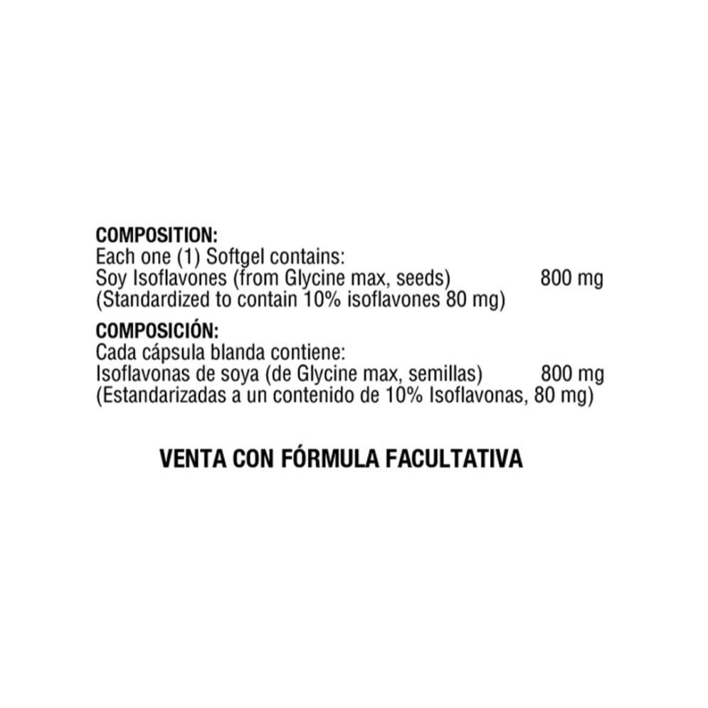 Ingredientes: Isoflavonas de soya (vegetal).